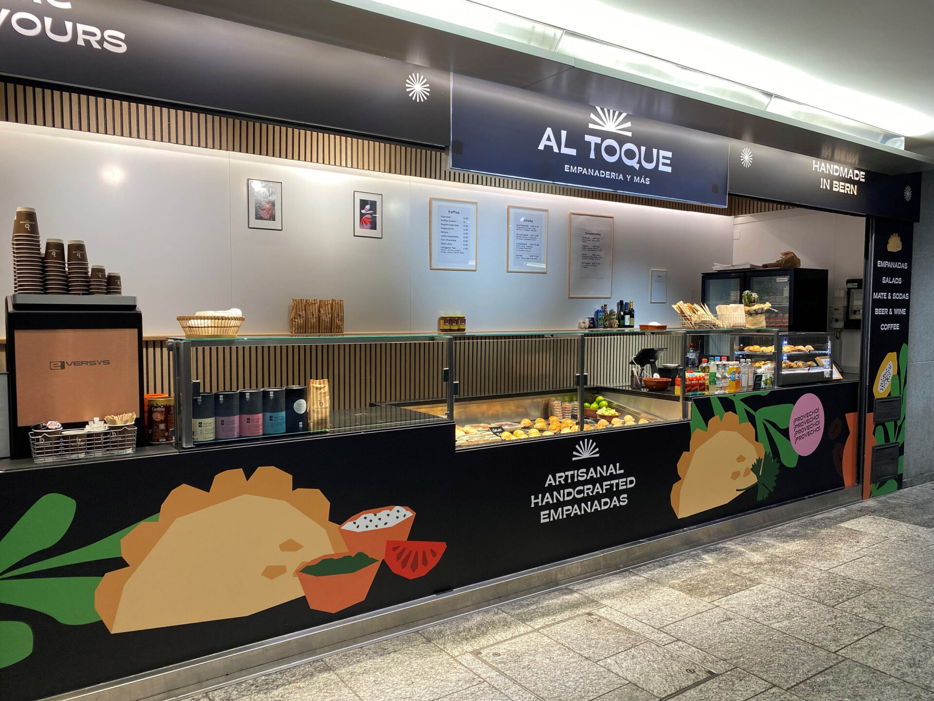 Der Take-away Al Toque kehrt an den Bahnhof Bern zurück! Nach einem halben Jahr Gastspiel bei Adrianos Playground in der Bahnhofshalle im Jahr 2022 eröffnete Al Toque am 8. Februar sein eigenes Take-away in der Personenunterführung.