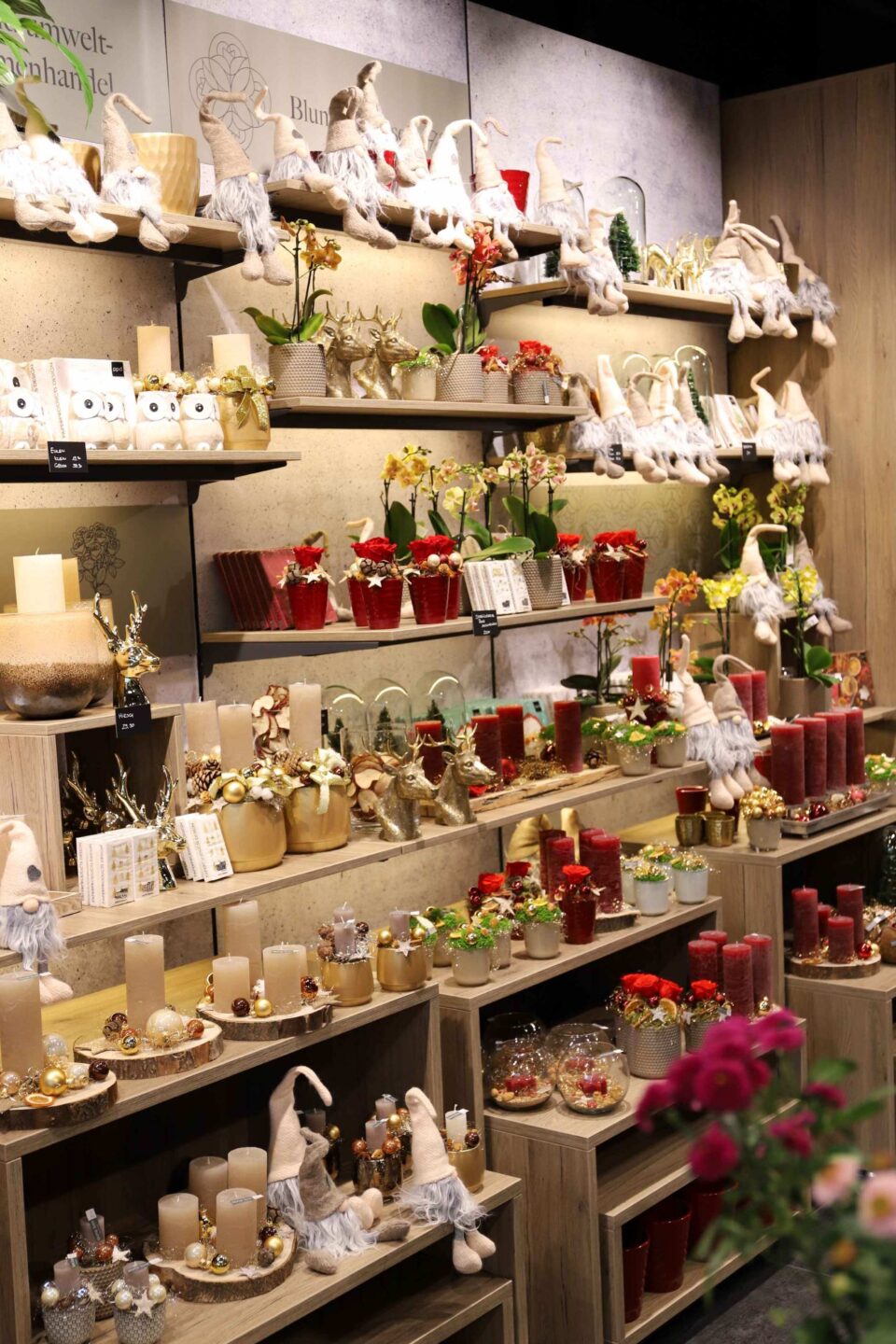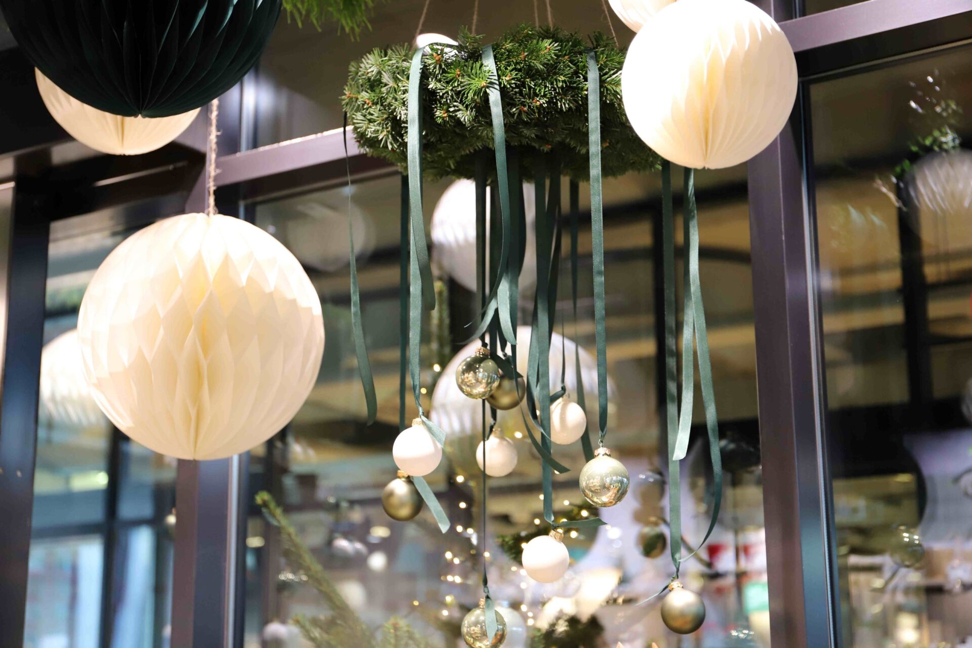 - Festliche Dekorationen im Laden sorgen für eine warme, weihnachtliche Stimmung.